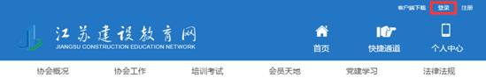 用户登录“江苏建设教育网”(网址:www.jscen.com),点击页面右上角“登录”按钮进行账号登录。