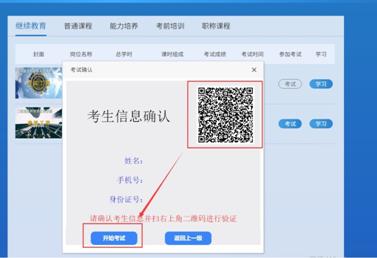 (2)进行个人信息确认,并扫描二维码进入公众号核实身份并采集考生照片。身份核实完毕后可点击“开始答题”进入考试页面。
