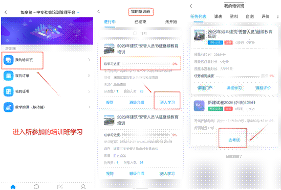 从“我的培训班”或“我学的课”进入。