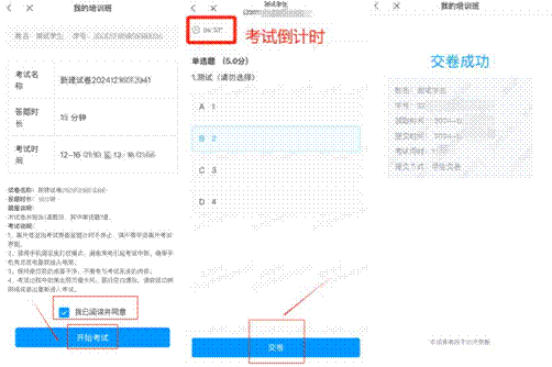 阅读考试须知并正式进入考试后,可对每一题作答,考试题型可能会有单选题、多选题、