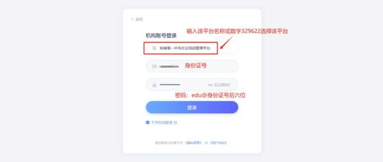 进入“机构账号登录”页面,输入如皋第一中专社会培训管理平台(或输入数字329622,选择如皋第一中专社会培训管理平台)。