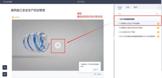 任务点内容可能包括视频、文档等形式,一个章节中可能包含多个任务点,请确认完成且任务点状态跳转为绿色,显示“任务点已完成”。