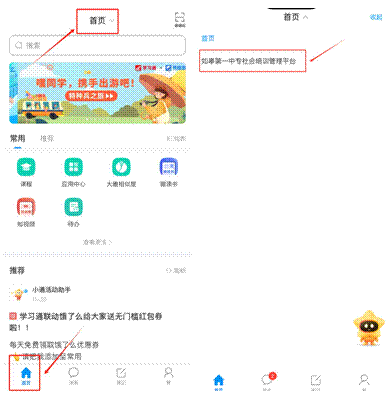 进入移动端后,一定要在首页切换平台为“如皋第一中专社会培训管理平台”。