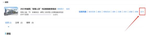 进入培训班学习,可看到学习总进度、该课程必须完成的任务(课程、考试)。