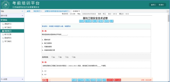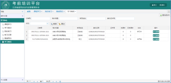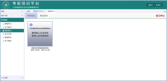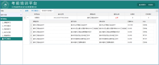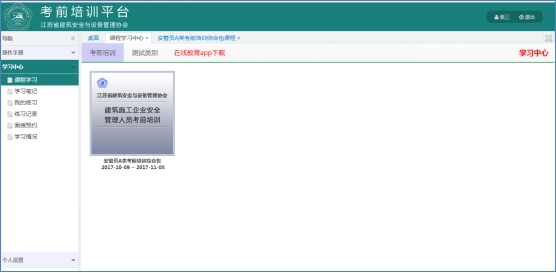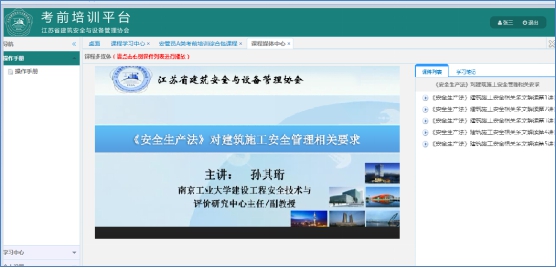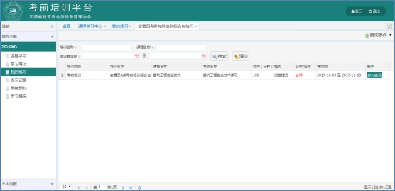 学员登录江苏省设备与管理协会考前培训平台(http://180.96.50.34:8090/examtraining/login
